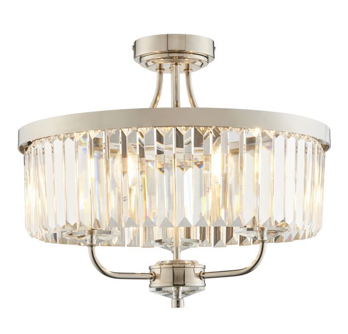 Blackstone Arcadia 3 Light Multi Arm Lamp Semi Flush Fitting Finished In Bright Nickel Plate & Clear Cut Glass (254962)
