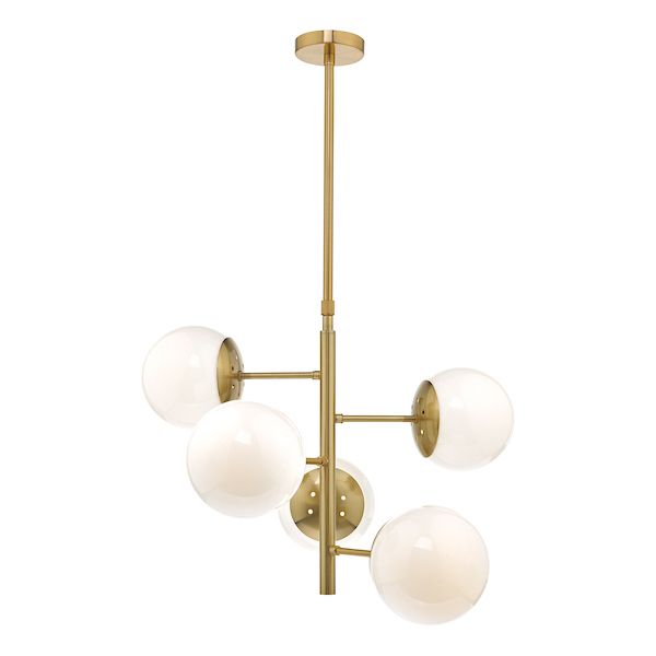 Dar Bombazine 5 Light Pendant Natural Brass & Opal Glass (BOM0535)