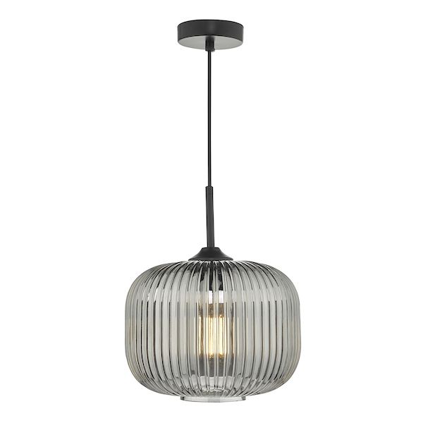 Dar Demarius 1 Light Pendant Black and Smoked Glass (DEM0110)