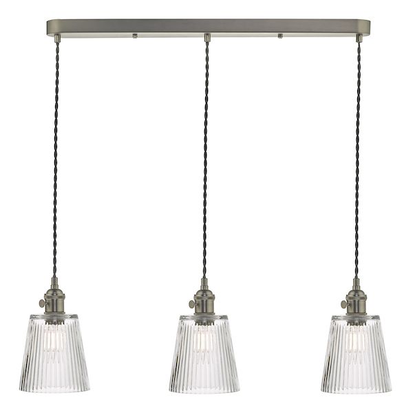 Dar Hadano 3 Light Antique Chrome Suspension With Ribbed Glass Shades (HAD3661-05)