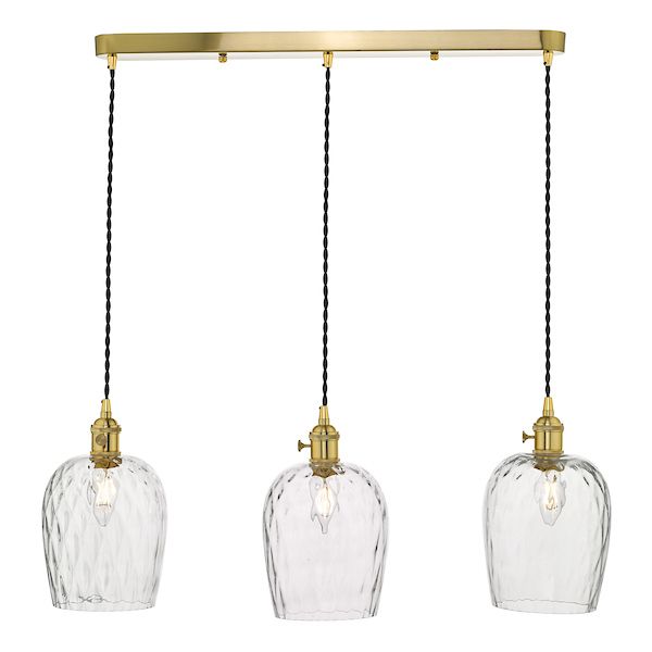 Dar Hadano 3 Light Brass Suspension With Dimpled Glass Shades (HAD3640-03)