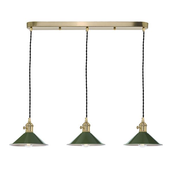 Dar Hadano 3 Light Brass Suspension With Olive Green Shades (HAD3640-07)