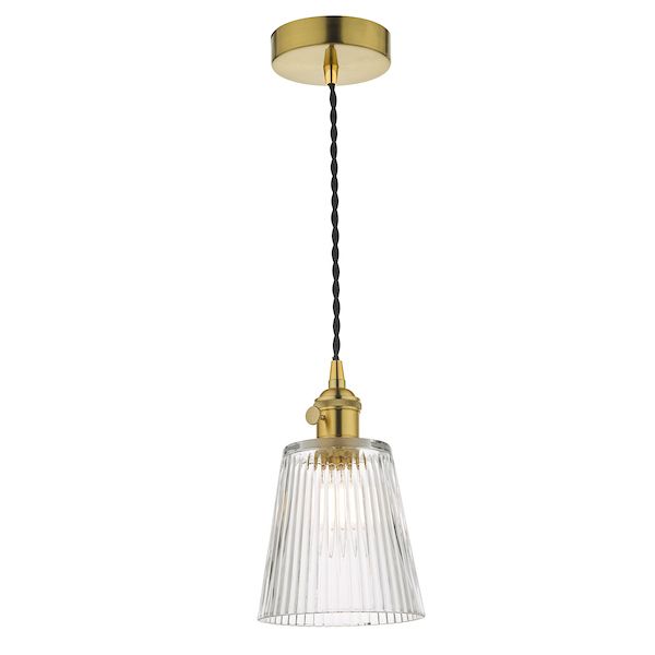 Dar Hadano Pendant Natural Brass With Ribbed Glass Shade (HAD0140-05)