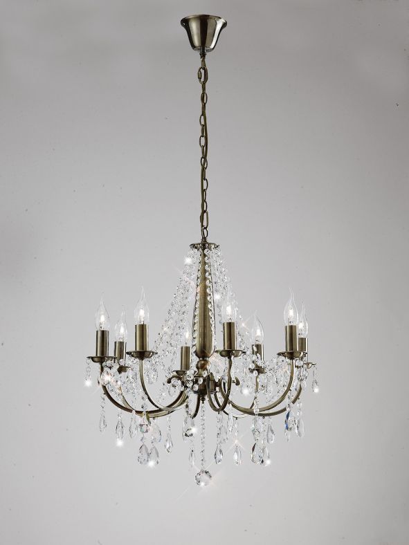 Diyas IL30057 Olivia Pendant Without Shade 8 Light Antique Brass/Crystal