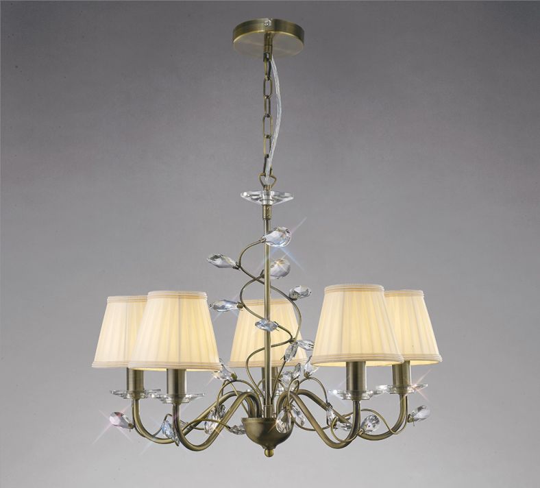 Diyas IL31225 Willow Pendant Without Shade 5 Light Antique Brass/Crystal