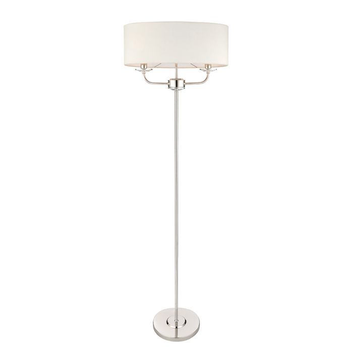 Endon Nixon 2 Light Floor Lamp in Bright Nickel Plate Finish & Vintage White Fabric Shade (60803)