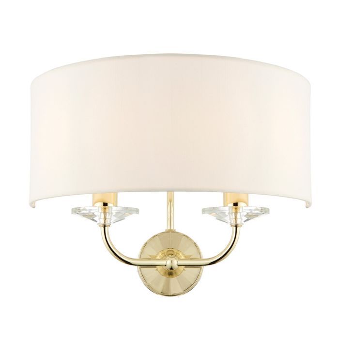 Endon Nixon 2 Light Wall Lamp in Brass Plate Finish & Vintage White Fabric Shade (70562)