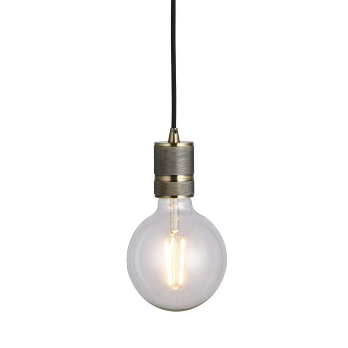 This industrial cable set is finished in antique brass plated metal with authentic machined details, suspended from height adjustable black fabric flex, an urban cool, timeless addition to your designer interior. The perfect carrier for filament LED lamps to create that stylish exposed lamp look.