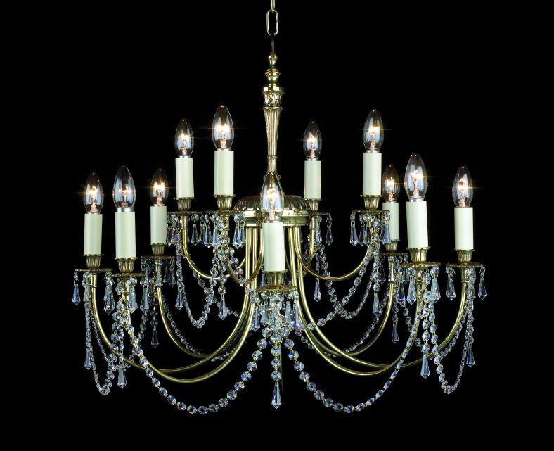 Impex SMBB00112/PB/CRY Richmond Series Decorative 12 Light Polished Brass Ceiling Light