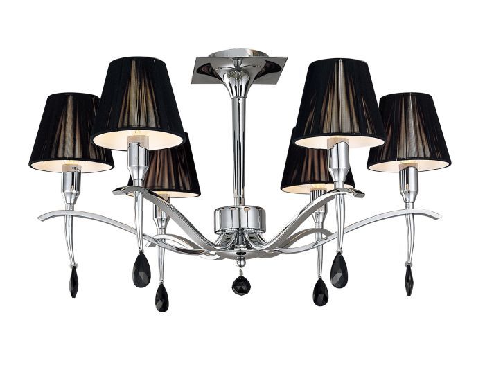 Mantra Siena Semi Flush Round 6 Light E14 Polished Chrome With Black Shades And Black Crystal (M0344)