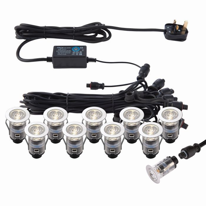 An addition to the popular IkonPRO recessed LED decking kit range, within each head there is the choice of 3000K or 4000K in one kit or the other kit offers 6500K or blue. Using the unique design of removable and interchangeable heads to change colour, you simply lift the LED head out of the connector, turn the head 180° and reinsert into the loom. Designed to be fitted and wired during the decking build stage without the heads, the supplied rubber caps protect the fitting from the elements until the decking is complete. Available in a variety of sizes and colours.