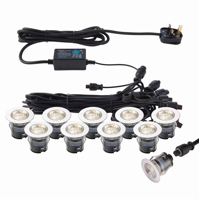 An addition to the popular IkonPRO recessed LED decking kit range, within each head there is the choice of 3000K or 4000K in one kit or the other kit offers 6500K or blue. Using the unique design of removable and interchangeable heads to change colour, you simply lift the LED head out of the connector, turn the head 180° and reinsert into the loom. Designed to be fitted and wired during the decking build stage without the heads, the supplied rubber caps protect the fitting from the elements until the decking is complete. Available in a variety of sizes and colours.