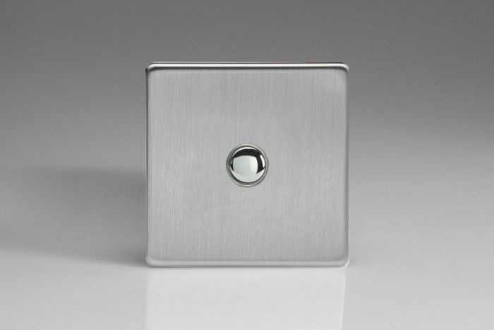 Varilight Brushed Steel 1-Gang 6A 1- or 2-Way Push On/Off Impulse Switch (XESP1S)