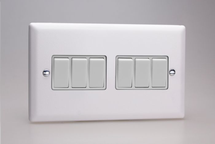 Varilight Chalk White 6-Gang 10A 1- or 2-Way Rocker Switch (Twin Plate) (XY96W.CW)