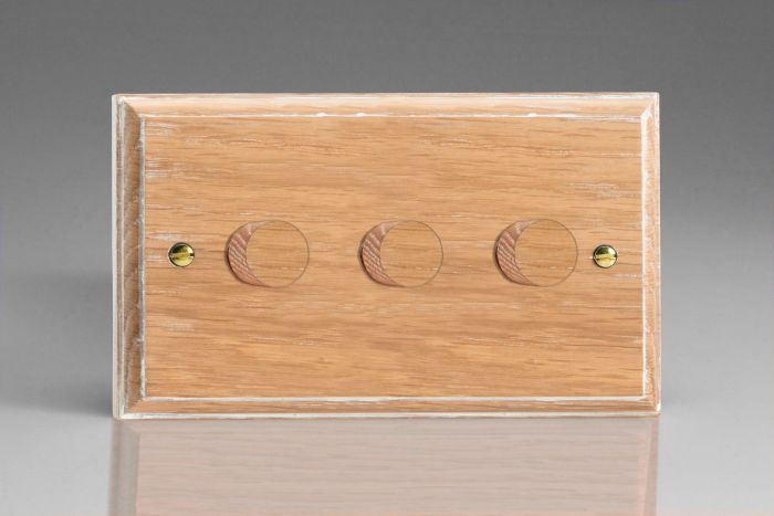 Varilight Limed Oak 3-Gang 2-Way Push-On/Off Rotary Dimmer 3 x 40-250W (Twin Plate) (HK43LO)