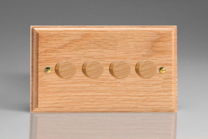 Varilight Oak 4-Gang 2-Way Push-On/Off Rotary Dimmer 4 x 40-250W (Twin Plate) (HK44O)